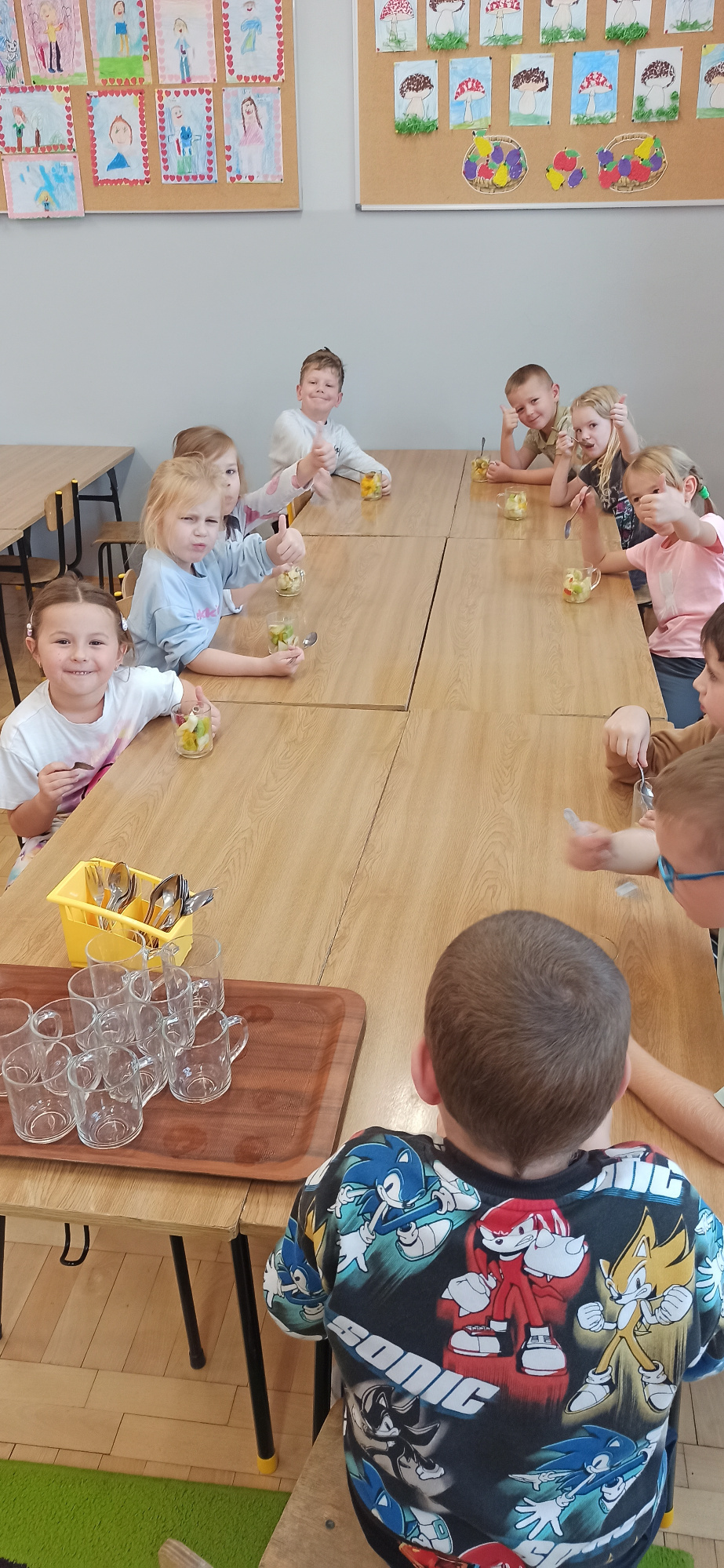 Efektem wspólnej pracy była kolorowa i pachnąca sałatka, którą dzieci z apetytem zjadły, ciesząc się naturalnym smakiem owoców. Zajęcia były nie tylko smakowitą przygodą, ale też doskonałą lekcją o zdrowym stylu życia, ekologii i współpracy w grupie.